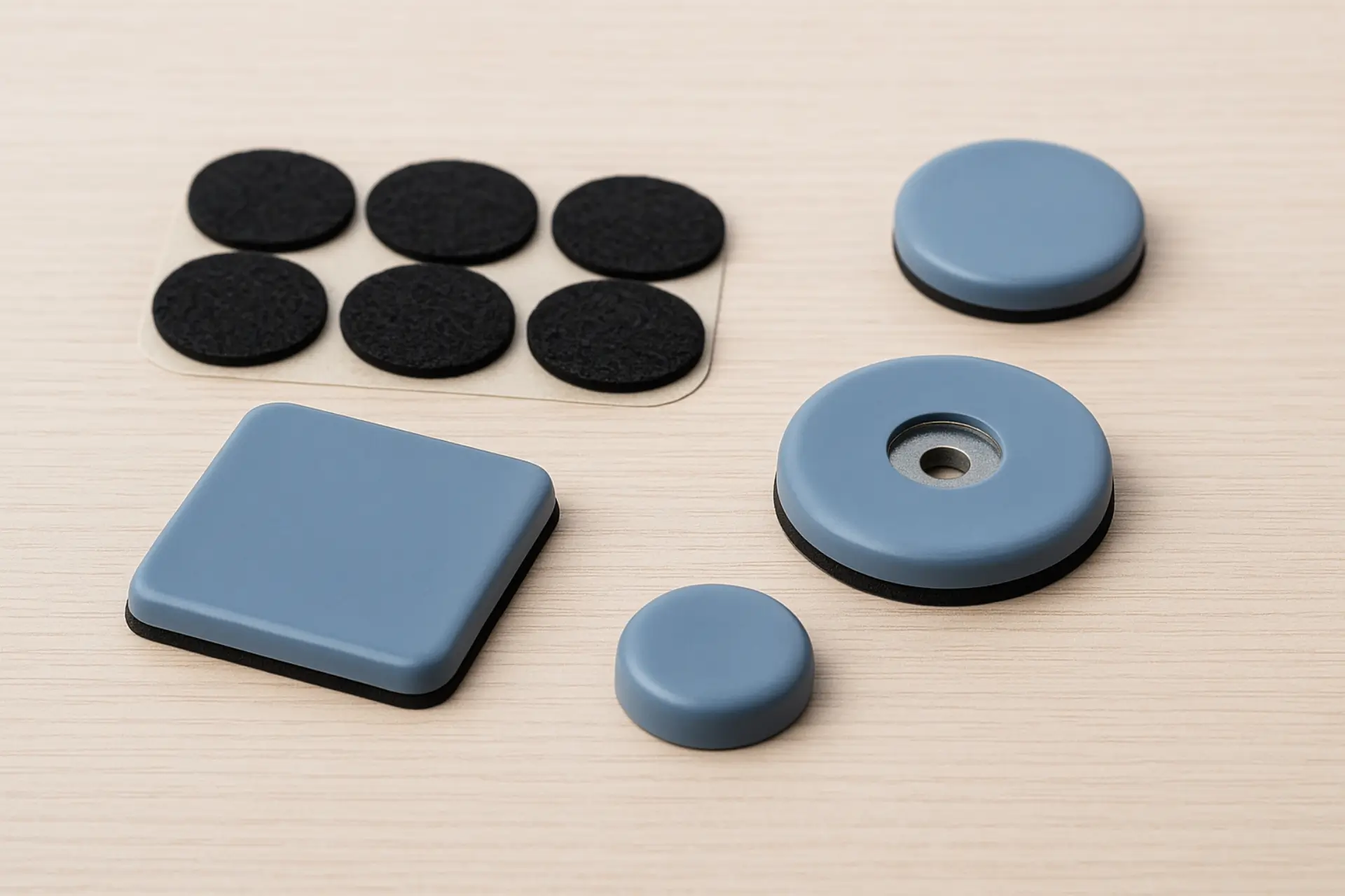 תחתיות לרהיטים בהדבקה – עגולות ומרובעות, במגוון מידות להגנה על הרצפה והרהיט.