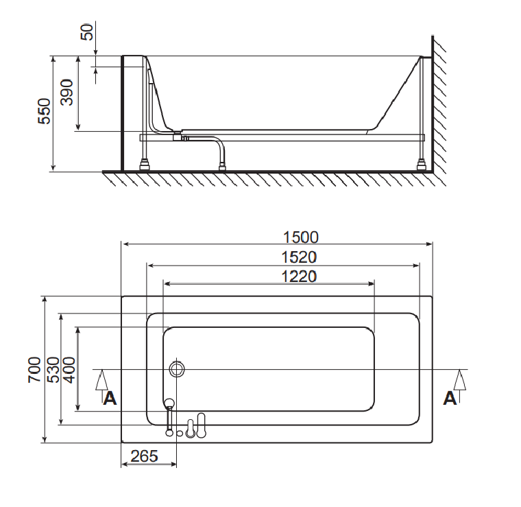 אמבטיה אקרילית 150/70 כולל קונסטרוקציה SKY