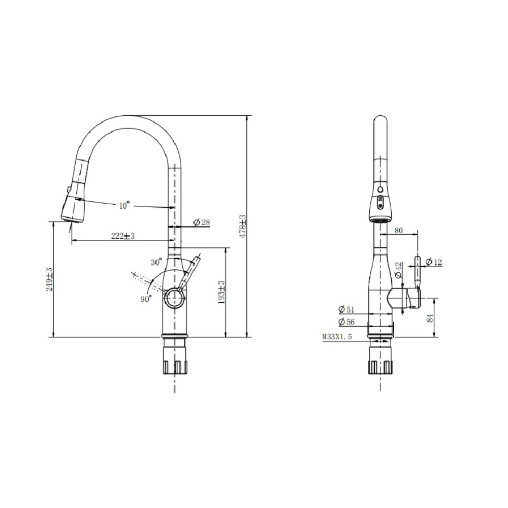 ברז מטבח נשלף למטבח שני מצבים כרום KORAL GUCCIA גוצ'יה