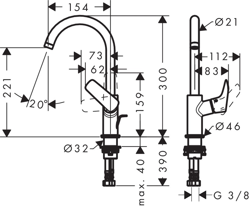 ברז פרח 210 מ"מ כולל ונטיל סדרת לוגיס 71130000 HANSGROHE