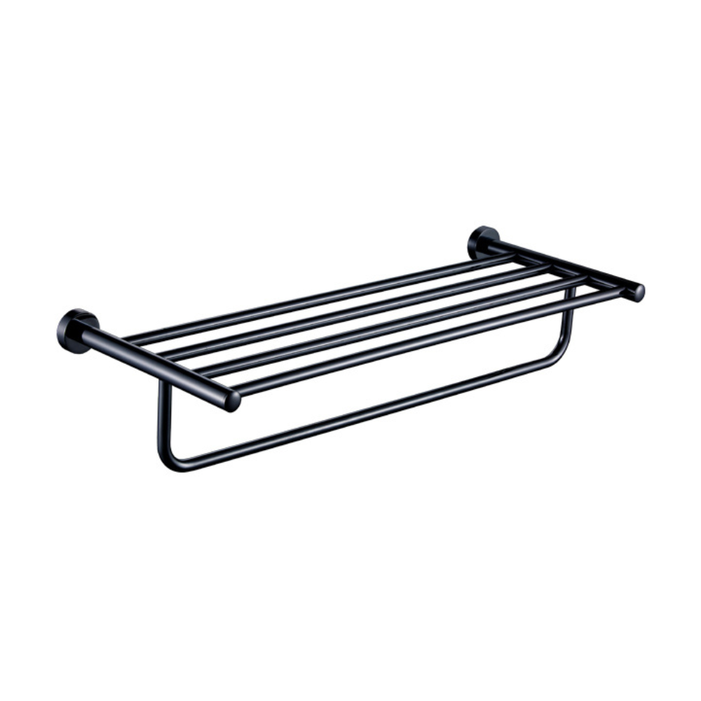 מדף מגבות משולב מוט מגבת 60 ס"מ שחור מט