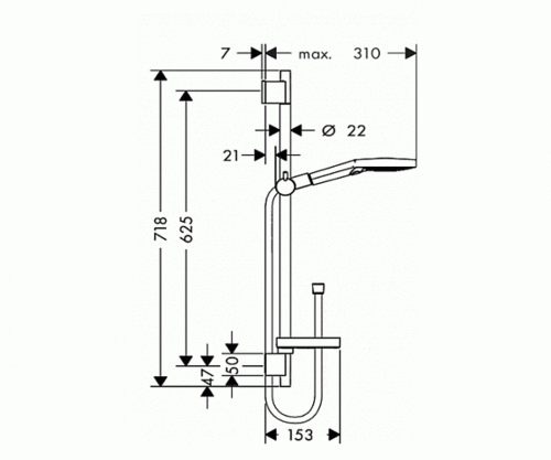מוט מקלחת קומפלט 65 ס"מ כולל מזלף 120 מ"מ כרום וצינור 160 ס"מ 26630000 HANSGROHE