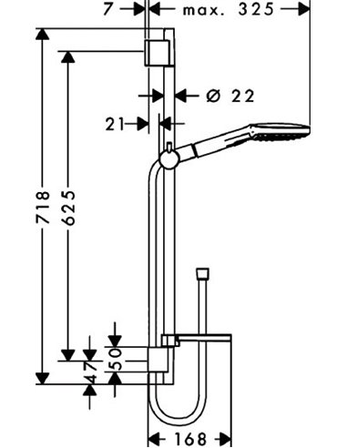 מוט מקלחת קומפלט 65 ס"מ כולל מזלף 120 מ"מ כרום לבן וצינור 160 ס"מ 26620400 HANSGROHE