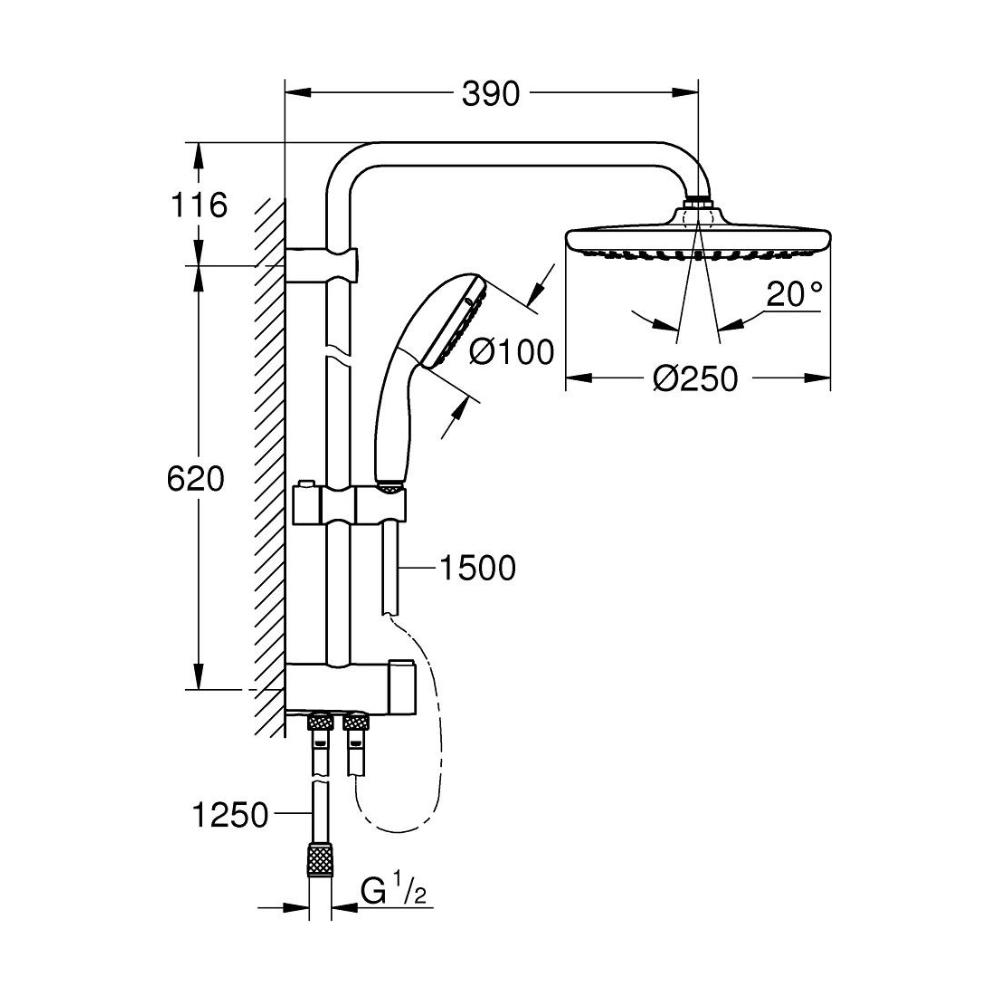 מוט פינוק משולב לאמבטיה כרום 26680000 Vitalio Start 250 GROHE