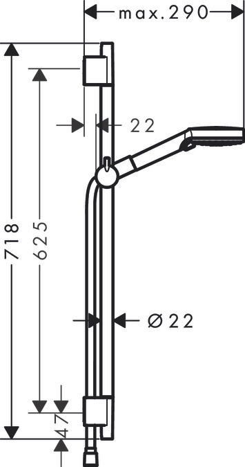 מוט קומפלט הכולל מוט, מזלף 2 מצבים וצינור 1.6 מטר שחור מט 26422670 HANSGROHE