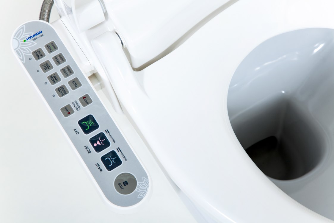 מושב אסלה טריקה שקטה עם בידה חשמלי הכולל פאנל שליטה מחובר למושב