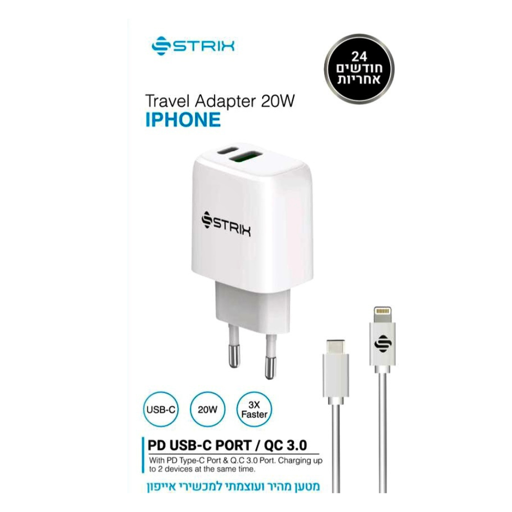 מטען מהיר 20W- ראש USB+USBC + כבל TYPEC-IPHONE