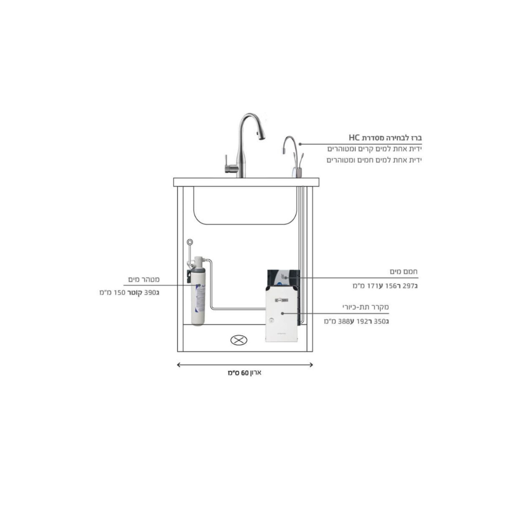 מספק עד 100 כוסות בשעה של מים קרים ומטוהרים בין 4-17 מעלות