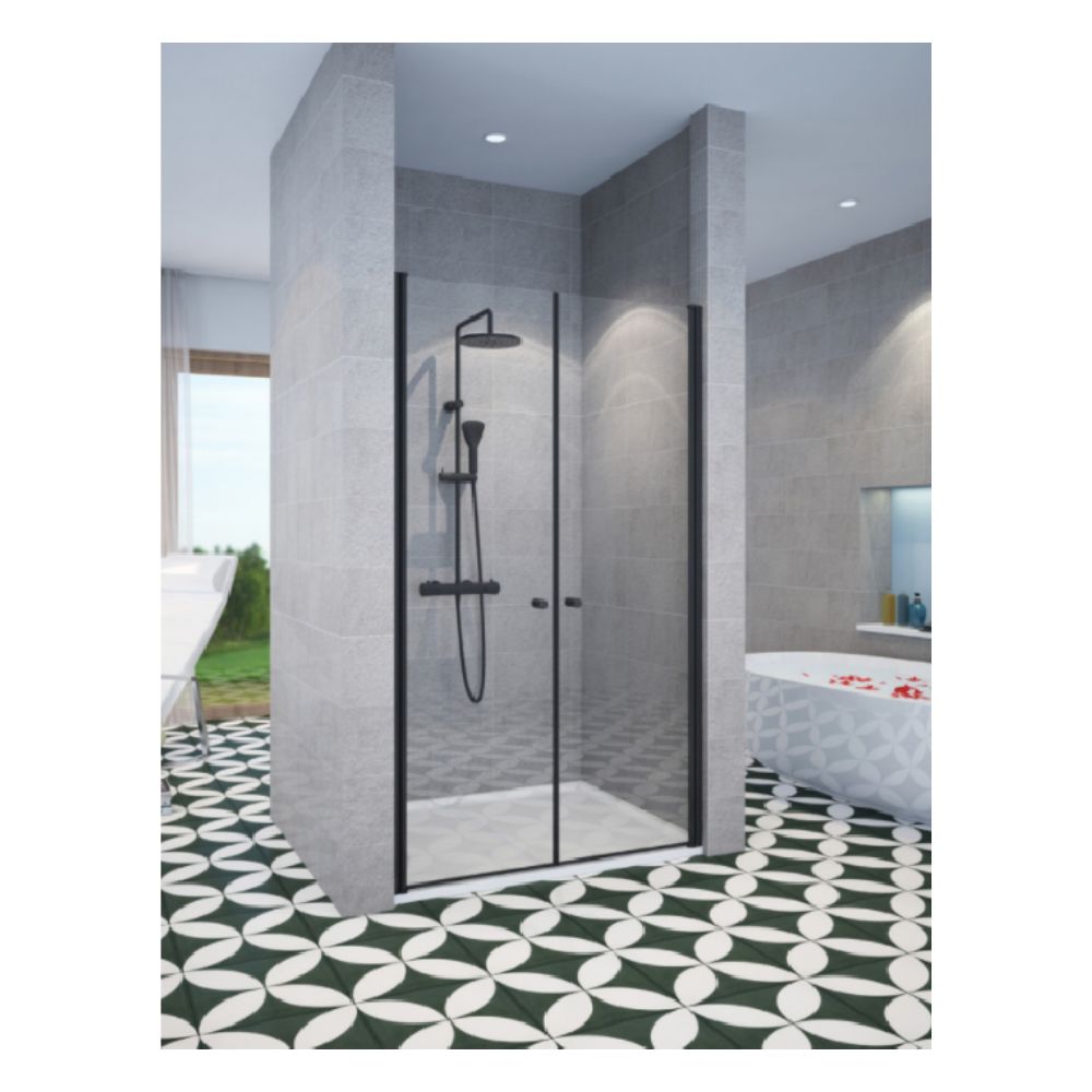 מקלחון חזית 2 דלתות 105-140 ס"מ 6 מ"מ פרזול שחור