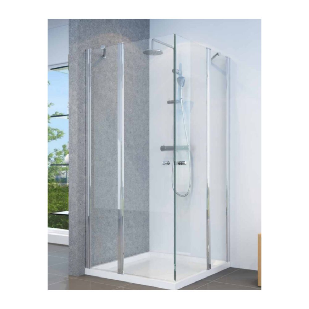 מקלחון פינתי 90/90 שתי דפנות קבועות ושתי דלתות