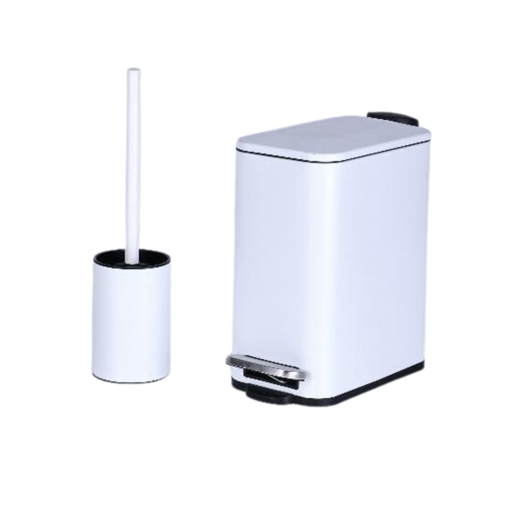 מק"ט: סט פח דוושה 5 ליטר לבן ומברשת אסלה לבנה דומו