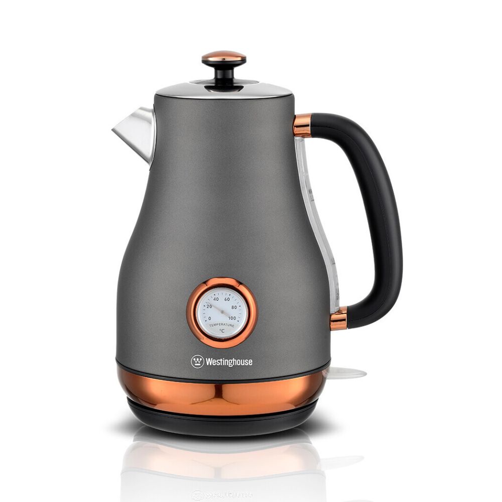 קומקום חשמלי נירוסטה מעוצב רטרו 1.6 ליטר 2200W עם מד טמפרטורה שחור מט WKWK695BK Westinghouse