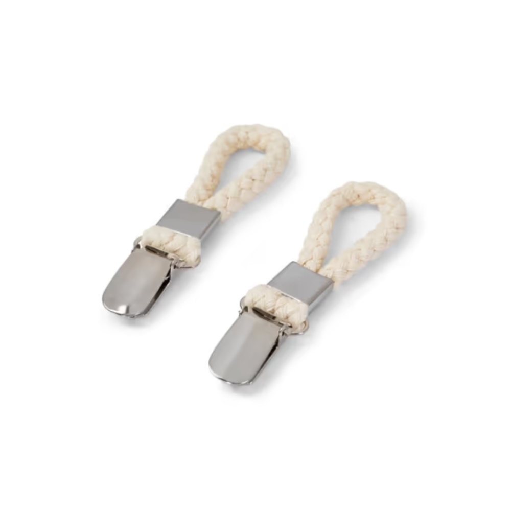 זוג מתלים למגבות עם קליפס מתכת איכותי ולולאה עמידה. מאפשרים תלייה נוחה ומהירה של מגבות בכל מקום בבית.